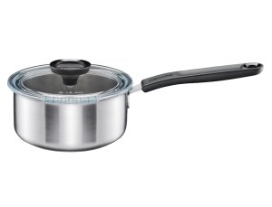 Nerezová rajnica so sklenenou pokrievkou GOOD AND COOK 1,9 l na prípravu rôznych pokrmov, má vonkajšiu aj vnútornú povrchovú úpravu v lesku, na vnútornej strane mierku objemu a má nerezový knob aj držadlo.