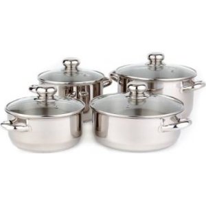 Sada riadu 8diel., nerez, SUPER VALUE. sada obsahuje: - rajnica pr.14 x 7 cm + sklenená pokrievka - hrniec pr. 16 x 8 cm + sklenená pokrievka - hrniec pr. 18 x 9 cm + sklenená pokrievka - hrniec pr. 22 x 11 cm …
