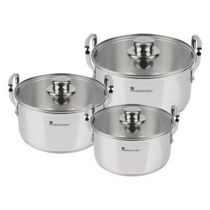 - Materiál: nerezová oceľ- Sada obsahuje:- Kastról s pokrievkou pr. 16x9,5 cm 1,9 l- Kastról s pokrievkou pr. 20x11,5 cm 3,6 l- Kastról s pokrievkou pr. 24x13,5 cm 6,1 L- Ergonomická rukoväť umožňuje dokonalé …