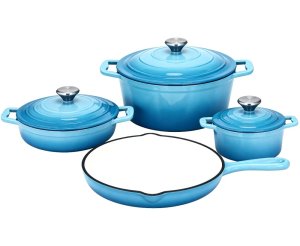 Moderná hliníková sada riadu v dymovo modrej farbe prináša do vašej kuchyne harmóniu štýlu, funkčnosti a pohodlia.