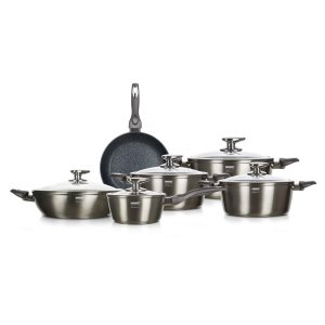 Varenie s eleganciou a maximálnou efektivitou ponúka táto sada riadu Aspen Collection s titánovým povrchom v modernom matne šedom prevedení.