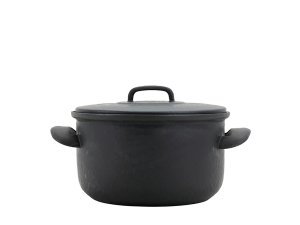 Priemer: 24 cm Výška: 13,5 cm Objem: 5 l Vonkajšia farba: čierna matná s ručne nanášanou plasticitou Smaltovaný hrniec s pokrievkou.