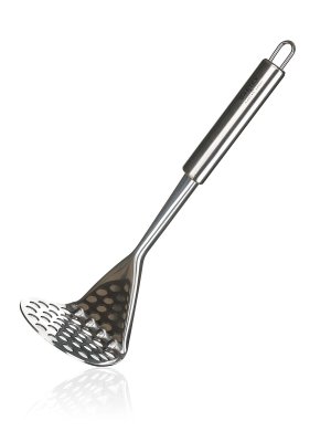 Nerezové mačkadlo zemiakov s plastovou rukoväťou.