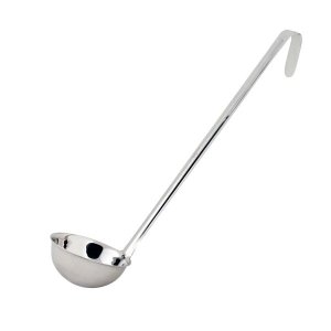 Naberačka na polievku 30 cm, vyrobená z lesklej nerez oceľ, opatrená otvorom na zavesenie, vhodná do umývačky riadu.