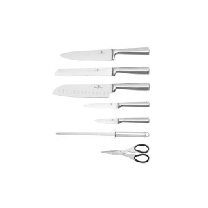 - Materiál: nerezová oceľ 3cr13 s rukoväťou v saténovom a zrkadlovom lesku. - Kuchársky nôž 20 cm - Krájací nôž 20 cm - Nôž na chlieb 20 cm - Úžitkový nôž 12,5 cm - Nôž na okrajovanie 9 cm - Ocieľka - Stojan BA