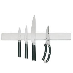 Magnetická lišta na nože, akáciové drevo, 500 x 65 mm, hrubé magnety, montáž páskou alebo skrutkami, elegantné darčekové balenie.