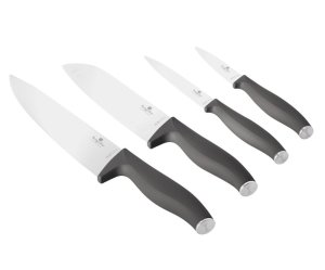 - Vysoko kvalitná nerezová oceľ - Tepelné spracovanie čepele - Ergonomická rukoväť Soft Touch - Ochrana prstov - Ručne ostrené - Elegantný dizajn - Farba: šedá - sada 4 ks obsahuje: - kuchársky nôž 20 cm - nôž …