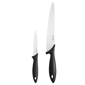 Sada kuchynských nožov obsahujúci nôž kuchynský a nôž okrajovací Možno umývať v umývačke riadu Sada obsahuje - Stredne veľký, praktický a všestranný nôž na lúpanie a krájanie ovocia a zeleniny s dĺžkou ostrie.