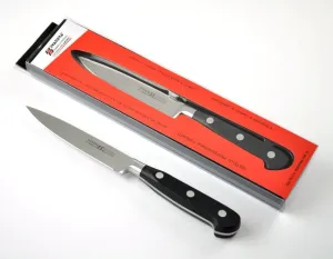 Vysoko kvalitný kovaný nôž s čepeľou dĺžky 11 cm a plastovou nitovanou rukoväťou, hrúbka čepele 3 mm.