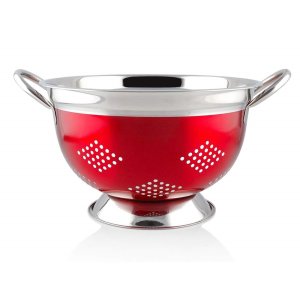 Cedník nerezový AVANZA 23,5 cm, červený, hrúbka steny 0,35 mm, výška 13,5 cm.