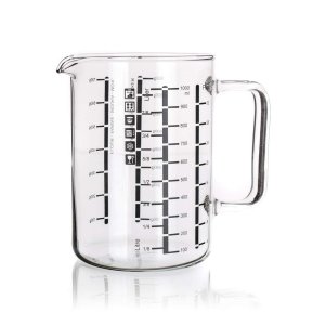 Kuchynská odmerka 1 l sa vyrába z tvrdého boritokremičitého skla, ktoré je veľmi odolné (mechanicky aj teplotne).