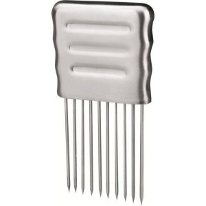 Krájanie cibule si môžete uľahčiť za pomoci tohto nerezového držiaka, ktorý obsahuje desať praktických ihiel.