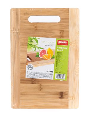 Doštička s rúčkou 30 x 20 x 1,5 cm, BRILLANTE, bambus. rozmery: 30 x 20 x 1,5 cm materiál: bambusové drevo Bambusová krájacia doštička je vhodná na krájanie mäsa, zeleniny a ďalších potravín.