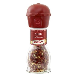S mlynčekom Kotányi Chilli s morskou soľou dodáte ostrosť jednoducho každému jedlu V mlynčeku nájdete najslabšie chilli z nami ponúkanej škály, obsiahnutá hodnota je 8.000-9.500 Scoville jednotiek Sypký koreniaci …