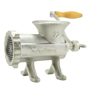 Liatinový mlynček mäsa č. 22. Balenie obsahuje mlynček, nôž a dosku.