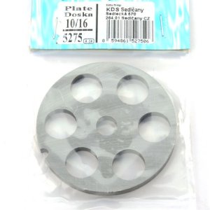 priemer: 69,5 mm priemer str.otvoru: 10 mm vŕtanie: 16 mm Doska do mlynčeka na mäso č. 10/16 na mletie mäsa a iných surovín.