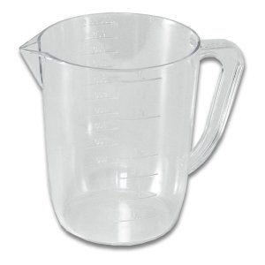 Objem merania 1 liter, výška odmerky 14 cm a priemer 11.5 cm.