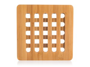 Podložka drevená 18 x 18 x 1 cm BRILLANTE, bambus. rozmery: 18 x 18 x 1 cm materiál: bambus Podložka drevená bambusová je praktická pre využitie v kuchyni ako podložka pod teplé i studené pokrmy a nápoje.
