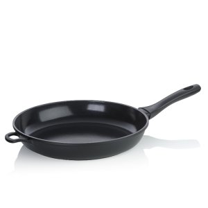 Panvica 28 x 6 cm / 4 mm, nepriľnavý povrch, GRAZIA. priemer: 28 cm výška: 6 cm hrúbka steny: 4 mm farba: matná čierna Hliníková kovaná panvica GRAZIA so značkovým nepriľnavým 3vrstvovým povrchom ILAG …