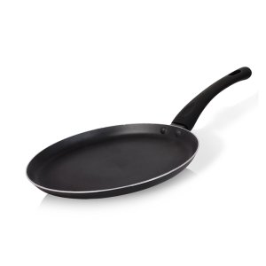 Ľahká hliníková panvica na palacinky s vonkajším lakovaním, ktoré je odolné proti oderu a poškriabaniu.