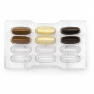 Polykarbonátová forma na pralinky v tvare veľkej kvapky.