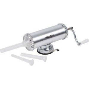 Plnička jaterníc, Al, priemer. 10 cm, 1,5 kg + 3 nástavce. - tri plniace nástavce s priemermi 18, 22 a 26 mm - valec vyrobený z vysoko kvalitnej zliatiny hliníka - určené pre styk s potravinami - plnička má priemer …