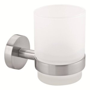 tesa® Moon držiak téglika na zubné kefky štýlový držiak téglika na zubné kefky, vzhľad nerezovej ocele v kombinácii saténového skla povrch je vodeodolný, zaručene nehrdzavejúci a má úpravu proti odtlačkom.