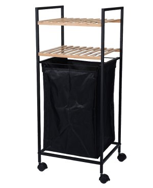 - kúpeľňový úložný regál s košom na bielizeň - oceľová konštrukcia v matnej čiernej farbe - ochranný nástrek predlžuje životnosť, bráni proti korózii - 2 rebrované police z prírodného bambusového dreva - hlavné …