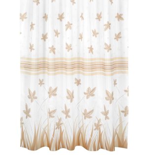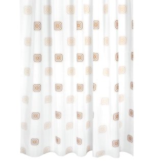 Kúpeľňový záves materiál 100% Polyester dĺžka 200 cm pranie na 30 ° C mierny postup nesušiť v sušičke žehliť maximálne na 110 ° C na hornej strane otvory pre háčiky súčasťou výrobku 12 háčikov na zavesenie