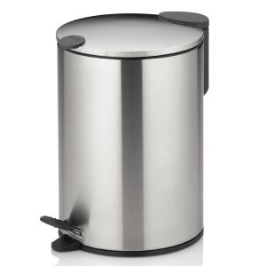 Na menší odpad v kuchyni a kúpeľni: kovový šliapací kôš s matným povrchom.