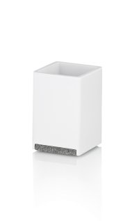 Biely kelímok na zubné kefky zo série Cube od kela s matným vzhľadom. Štvorcový základný tvar a solídne pôsobiaci vzhľad v kombinácii s bielou farbou dodávajú hrnčeku osobitý vzhľad.