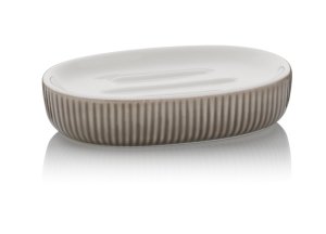 Farebný, veselý akcent do každej kúpeľne: miska na mydlo AVA v pútavej kamennej šedej s bielou keramickou policou.