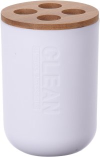 Téglik na kefky pr. 7 x 11 cm, 300 ml, PH BÍ/bambus. objem: 300 ml priemer: 7 cm výška: 11 cm materiál: plast, babmus farba: biela Elegantný kelímok na zubné kefky, kombinácia plastového kelímku …