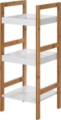 Kúpeľňový vešiak s policami – bambusPraktický a elegantný kúpeľňový vešiak vyrobený z kvalitného bambusu (Phyllostachys).