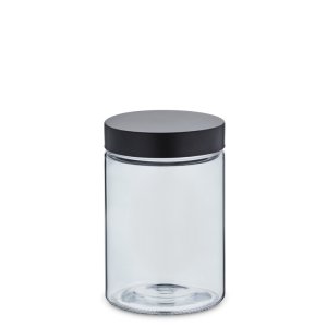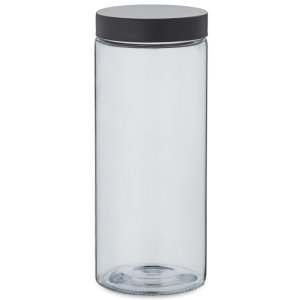 Pre väčší poriadok pri skladovaní: okrúhla sklenená dóza so skrutkovacím viečkom z nerezovej ocele.