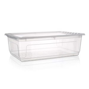Kvalitná plastová dóza s viečkom s klipmi na hermetické uzavretie.