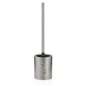 Súprava na toaletu - štetka s kovovým držadlom schovaná v nerezovom stojane.