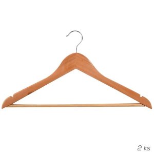Drevené ramienko s otočným kovovým háčikom na zavesenie Možnosť zavesenia nohavíc na spodnej tyčke a sukní na postranné háčiky Balenie obsahuje 2 ks ramienok Rozmery: 44,5 x 22,5 cm (š xv) Záruka: 2 roky