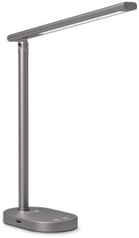Kompaktná stmievateľná stolná LED lampa s integrovaným 5V max. 500mA USB portom typu A na dobíjanie Vášho telefónu Rameno lampy je z eloxovaného hliníka Dotykový 5 stupňový stmievač na podstavci lampy …