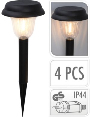 Solárna lampa - plast, 2x LED dióda, 1x dobíjacia batéria AA, solárny článok na hornom plastovom kryte lampy, svetelný senzor, dĺžka lampy 42,5 cm.