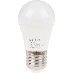 LED žiarovka RETLUX RLL 640 Mini globe 6 W Populárna náhrada za vláknovú žiarovku 60W Energetická trieda D Pätica E27 220-240V 6500K - denná biela Životnosť viac ako 25000h Svetelný tok: 810 lm Rozmery: