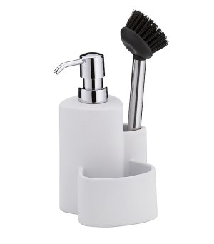 - materiál: keramika - dávkovač s pumpičkou a dve priehradky - čistiaca kefa s flexibilným použitím - výška: 22 cm - rozmery podstavy: 11 x 10 cm