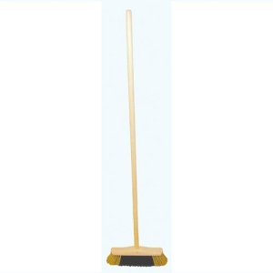Sálová metla vyrobená zo syntetických vlasov, dĺžka drevenej základne 80 cm.