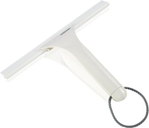 ideálna stierka pre sprchové kúty zo skla, akrylu alebo dlaždíc, stieracia časť je z bielej gumy, teda nerobí škvrny, vrátane remienka na zavesenie, šírka 24 cm, záruka 3 roky