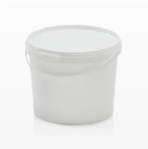 Plastové biele vedierko s vekom s poistkou a uchom na prenášanie.