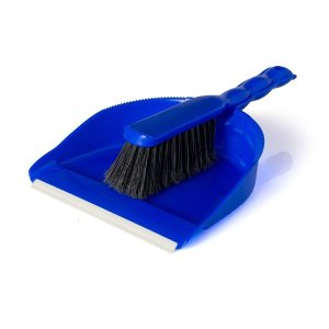 Lopatka so metličkou. Lopatka má skosený gumový okraj.