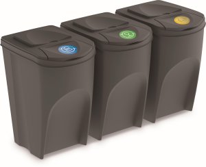 Súprava 3 odpadkových košov SORTIBOX. - modulárna konštrukcia - ľahká stohovateľnosť - ľahké triedenie domáceho odpadu - objem 3 x 35 litrov - farba: šedá Je možný svet bez odpadu?