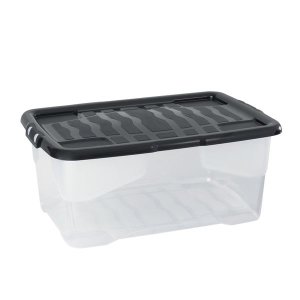 Univerzálna plastová nádoba s vekom uzavretým dvoma pevnými západkami je praktickým riešením na uloženie najrôznejších predmetov.