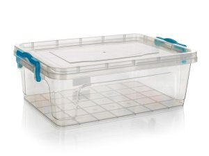 Úložný box vyrobený z postprodukčného recyklovaného materiálu (okrem klipov) Ideálny na skladovanie zásob alebo iných predmetov Priesvitná dymovo šedá farba, odhaľujúca obsah krabice Vysoko kvalitné prevedenie …