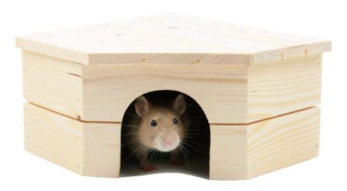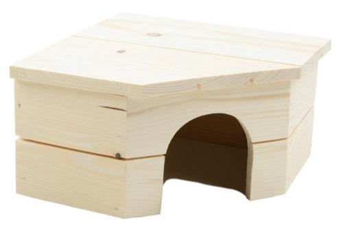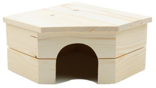 Rohový domček z mäkkého dreva s rovnou strechou pre morčatá, potkany a iné drobné hlodavce. Veľmi jednoduchá údržba vo vnútri domčeka. Domček nemá dno, takže ho stačí iba odklopiť a miesto pod ním vyčistiť. Domček je vyrobený z prírodného dreva, ktoré nie je nijako napustené ani natreté. Rozmery: 21 x 21 x 12 cm